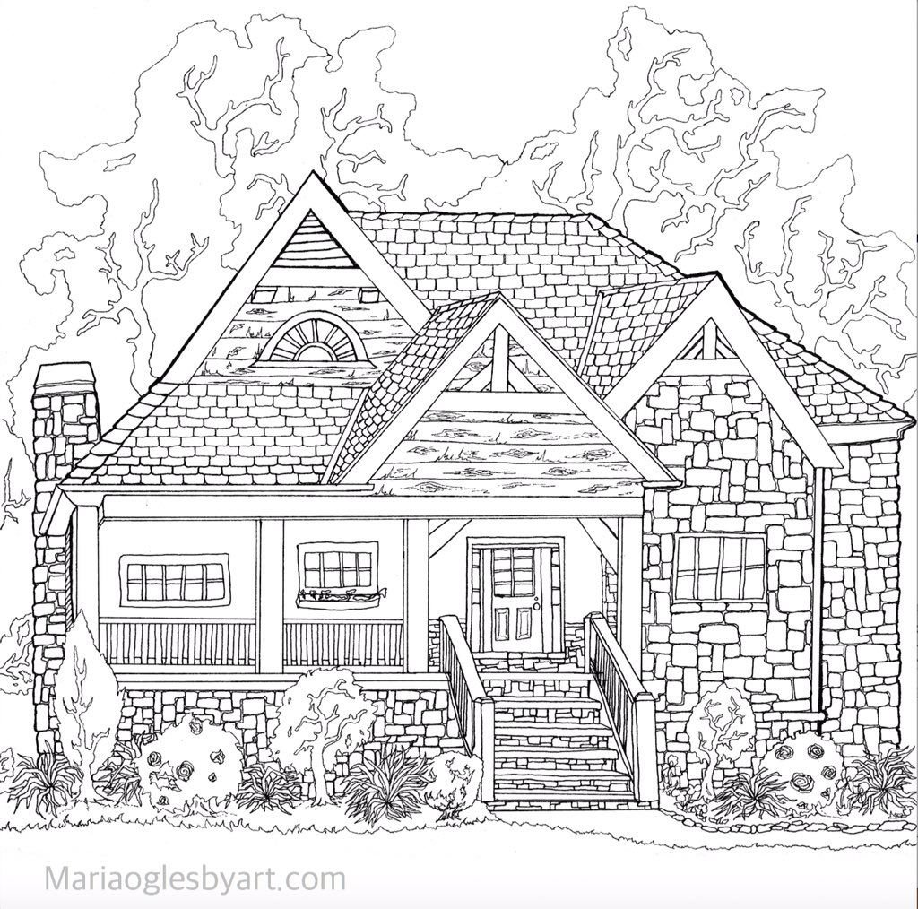 Раскраски для взрослых домики