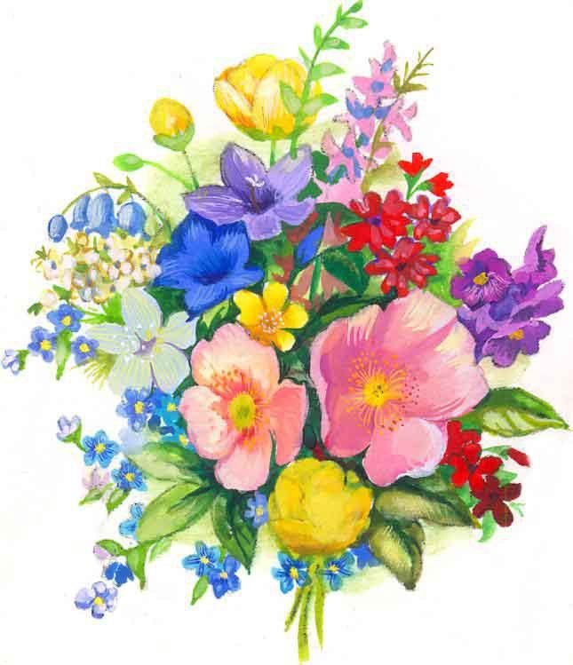![Цветы нарисованные цветные]()