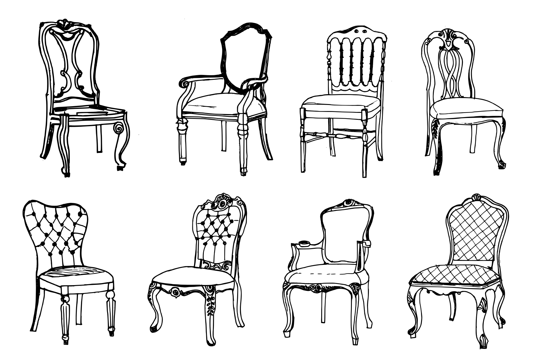 ![Зарисовки красивых стульев]()
