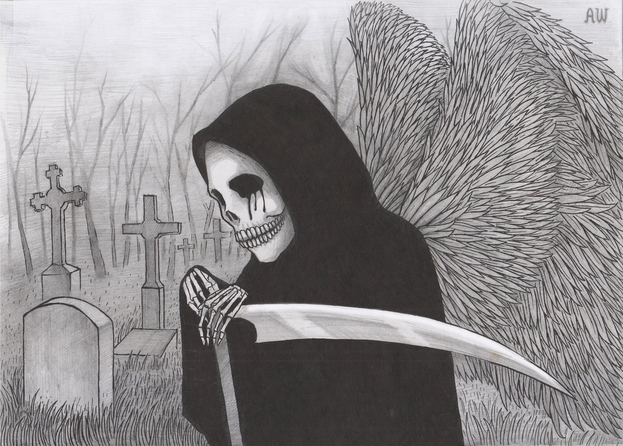 ![Зарисовки карандашом смерть]()