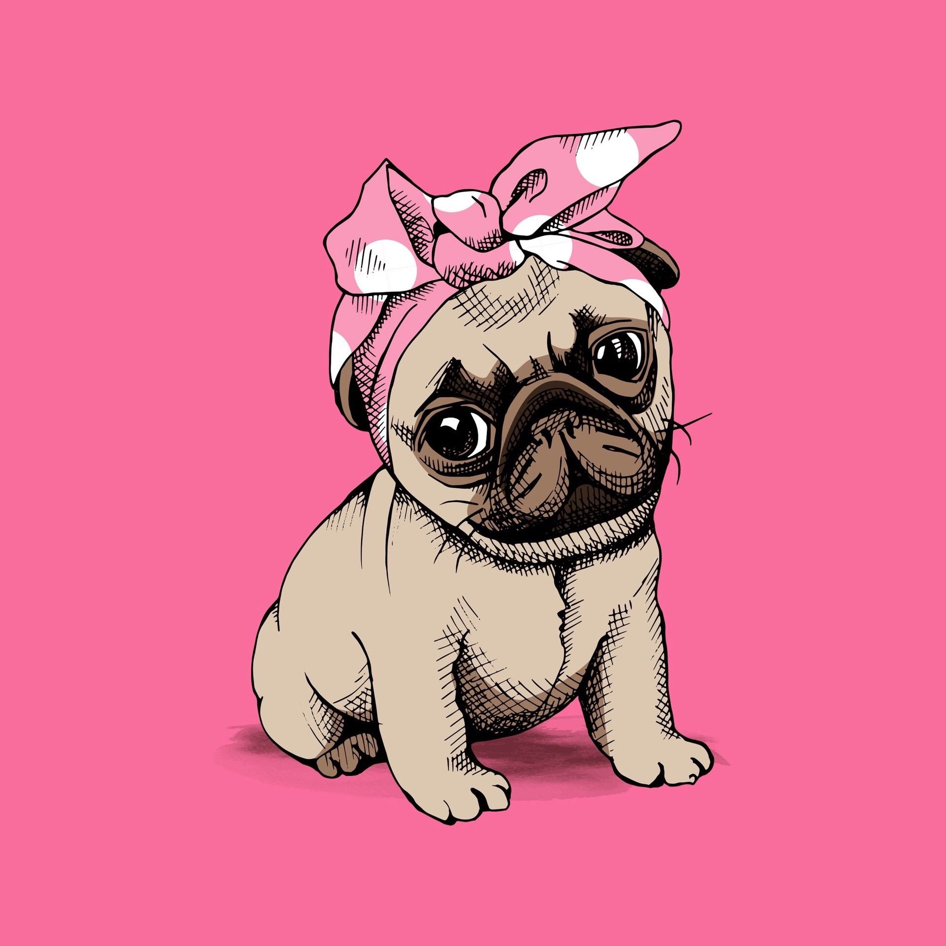 ![Мопс на розовом фоне]()