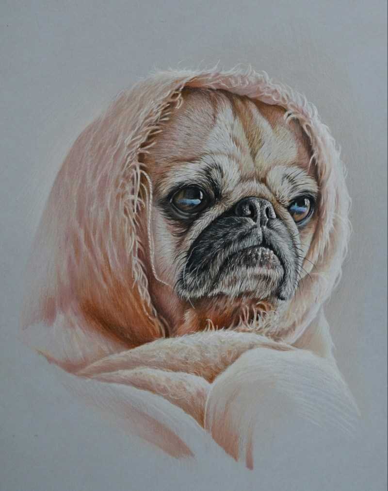 ![Мопс цветными карандашами]()