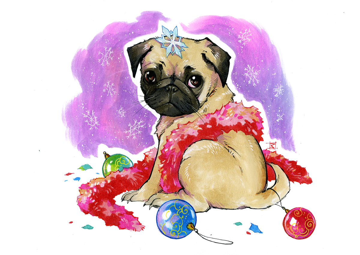 Новогодние мультяшные мопсы