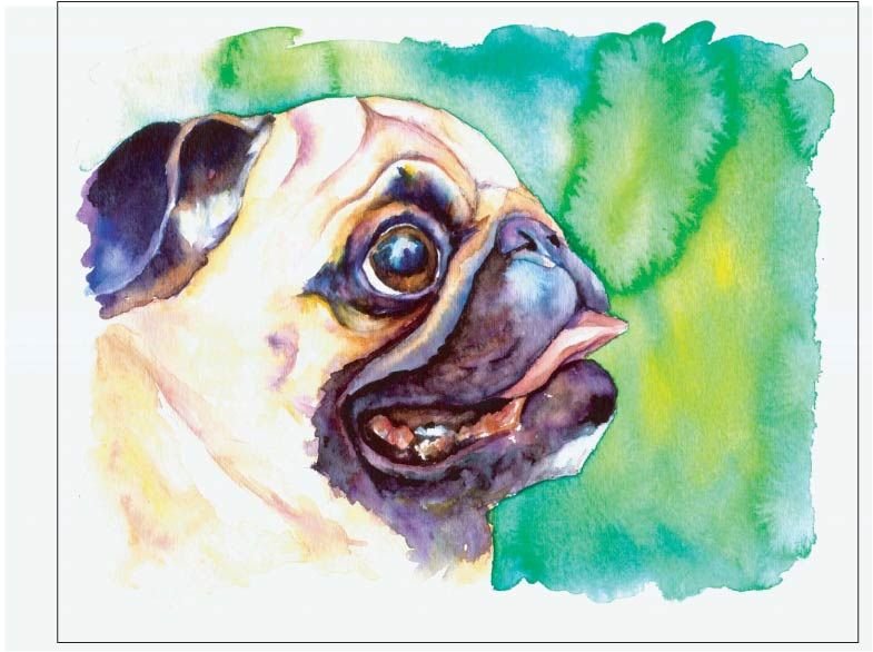 ![Мопс акварельными карандашами]()
