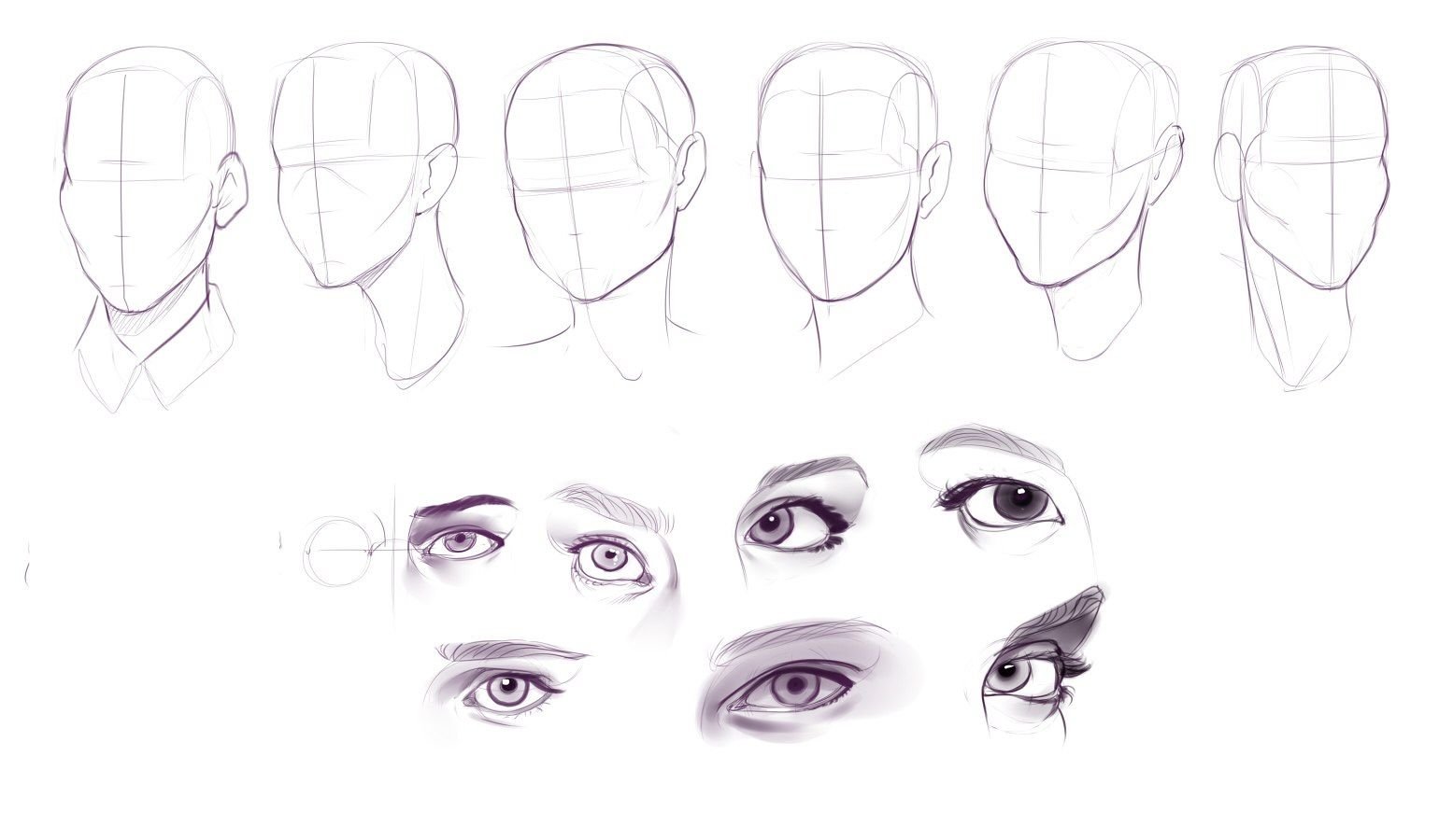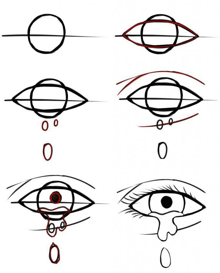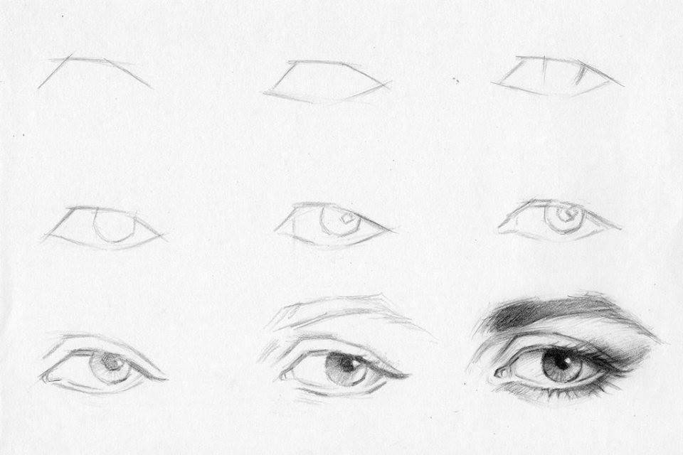 ![Этапы рисования глаз]()