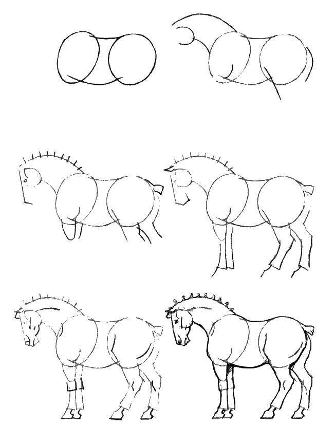 ![Рисунки лошади пошагово]()