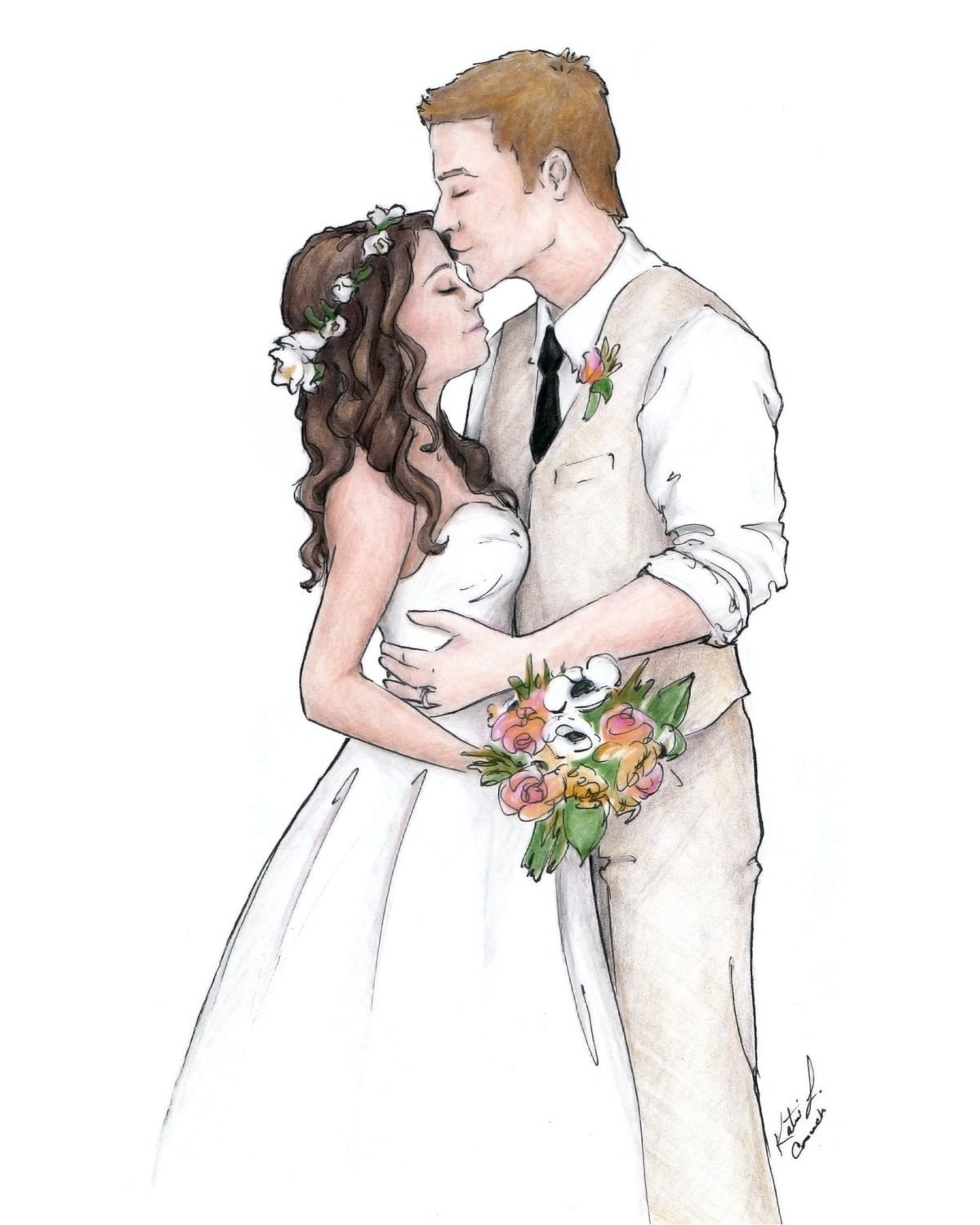 ![Жених и невеста рисунок]()