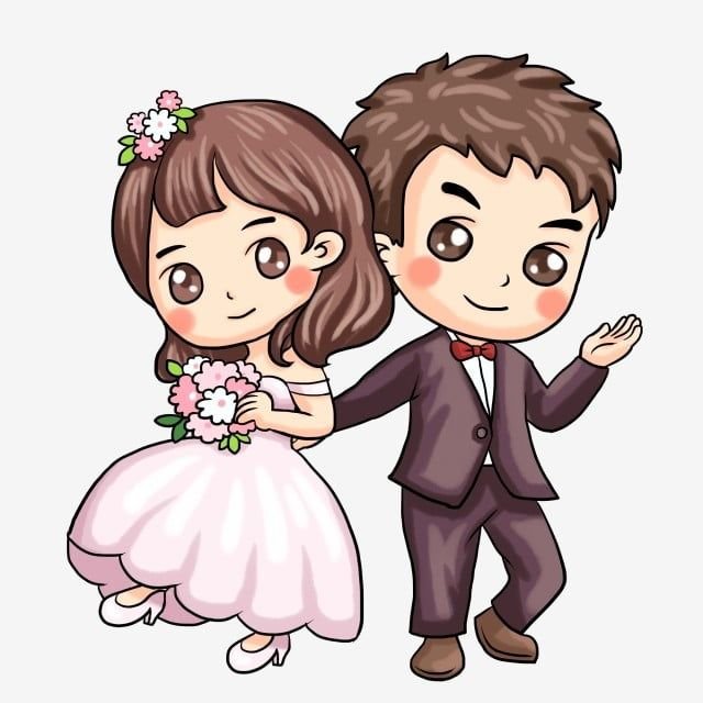![Мультяшный жених и невеста]()
