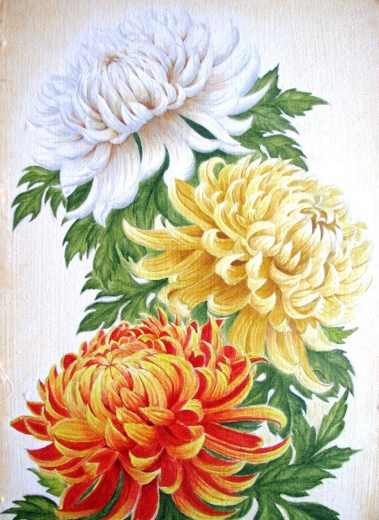 ![Хризантемы гуашью]()