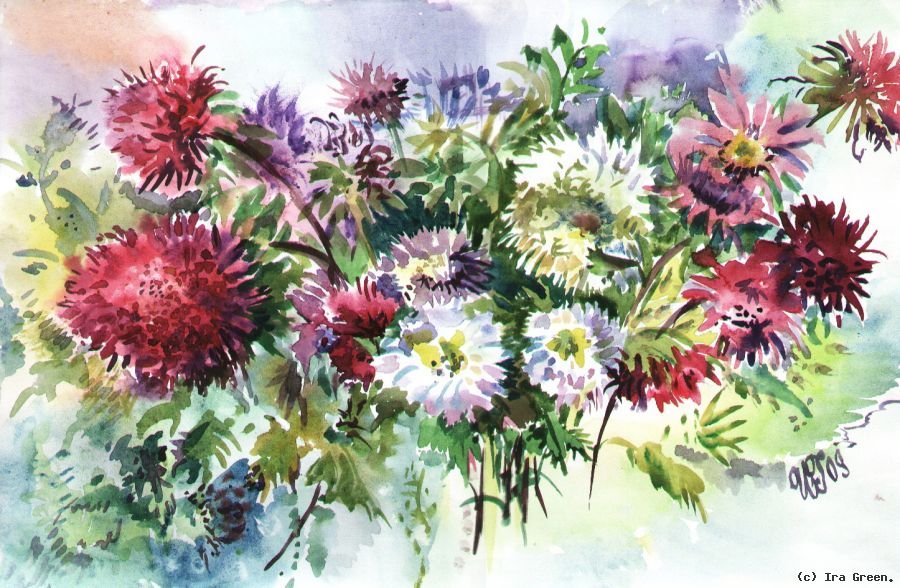 ![Астры акварелью]()