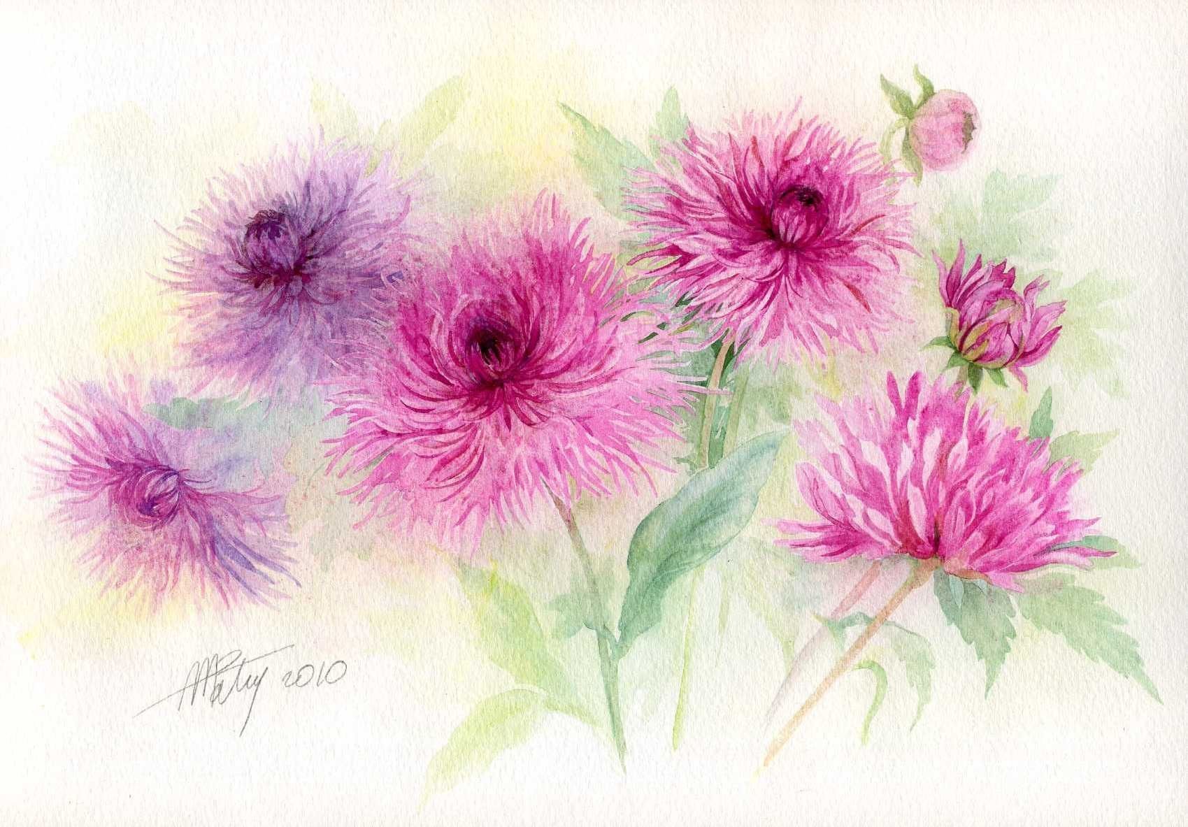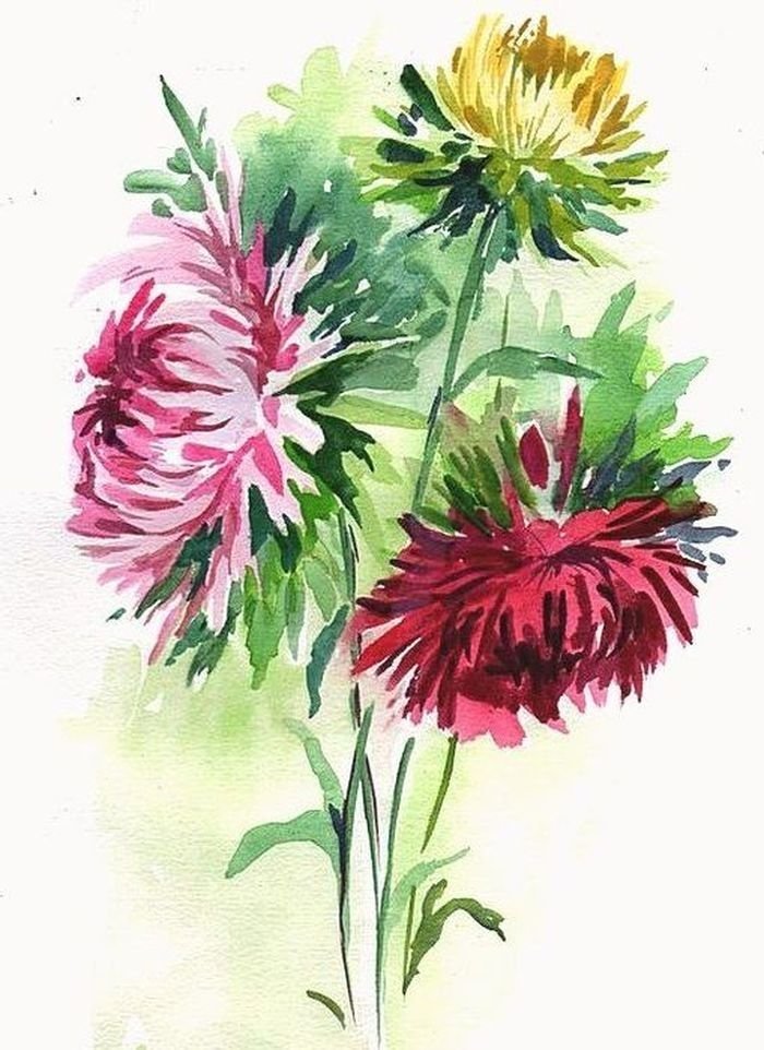 ![Астры живопись акварель]()