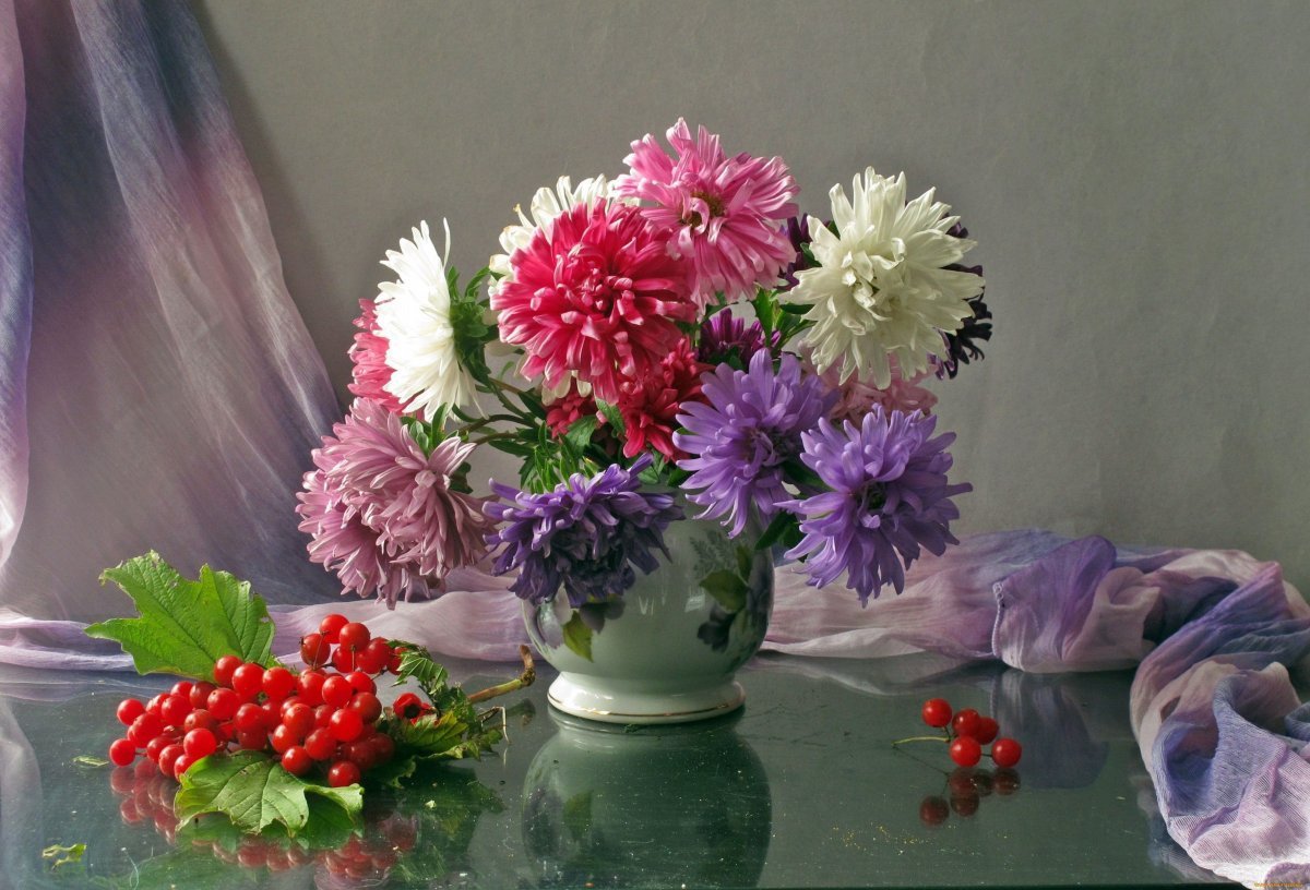 ![Георгины и хризантемы]()