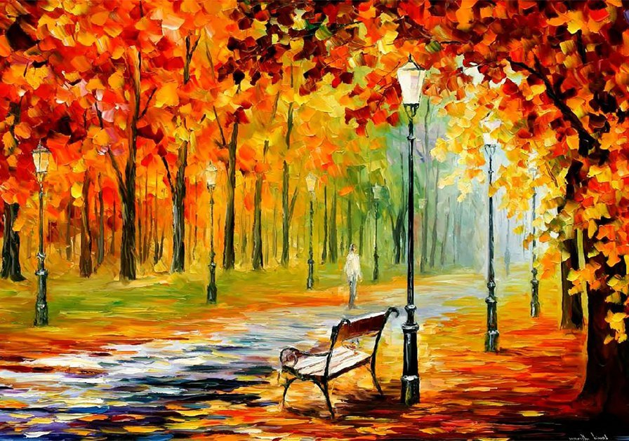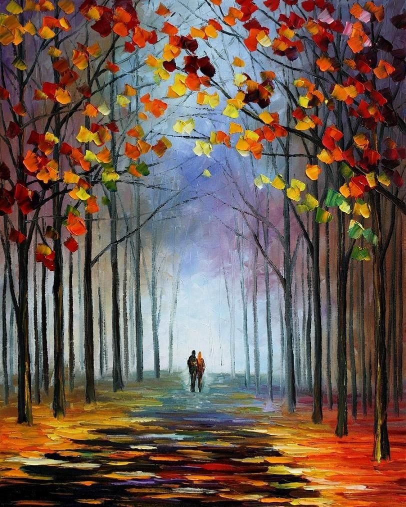 ![Леонид Афремов картины осень аллея]()