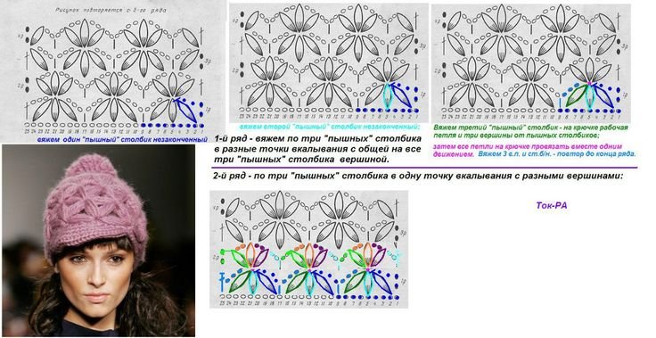 ![Шапки женские вязаные крючком зима схемы вязания]()