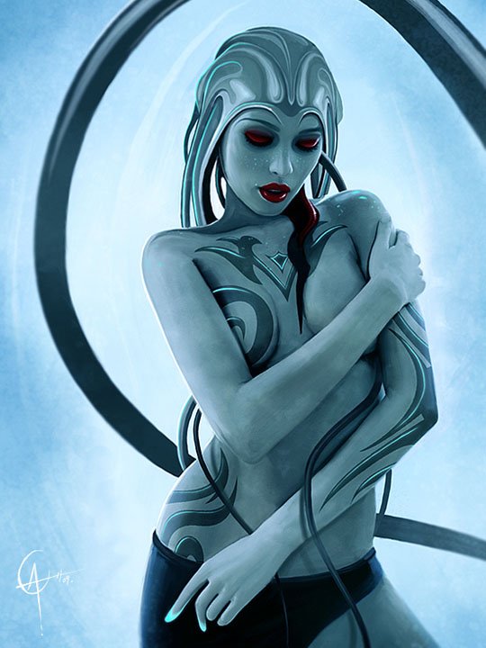 ![Mass Effect голубая инопланетянка]()