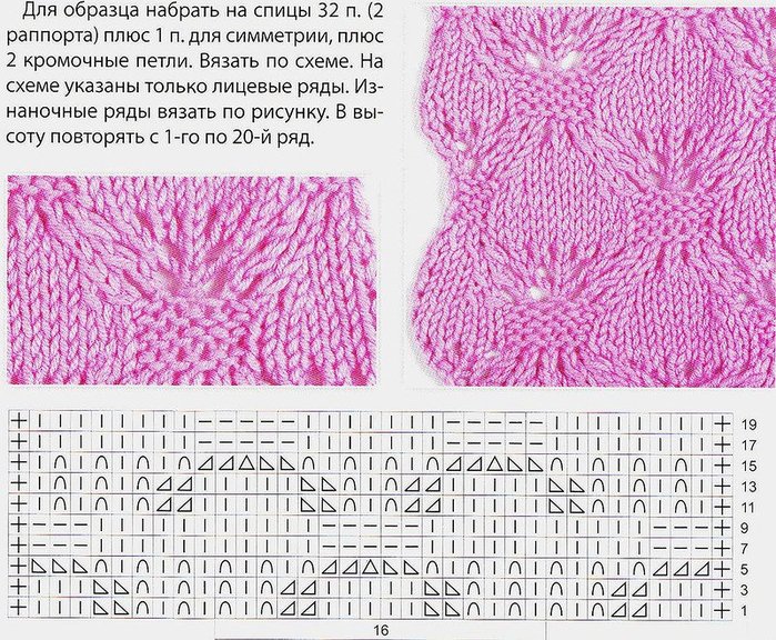 ![Образцы вязания на спицах со схемами ажурное вязание]()