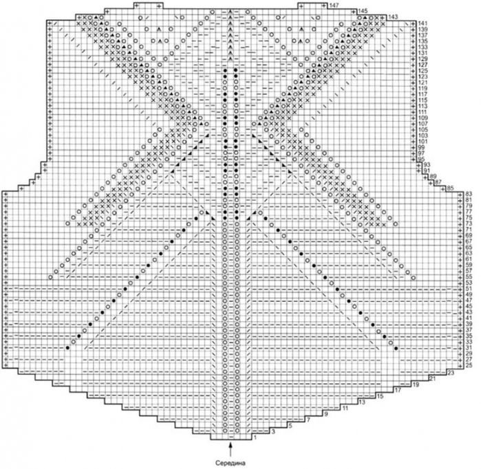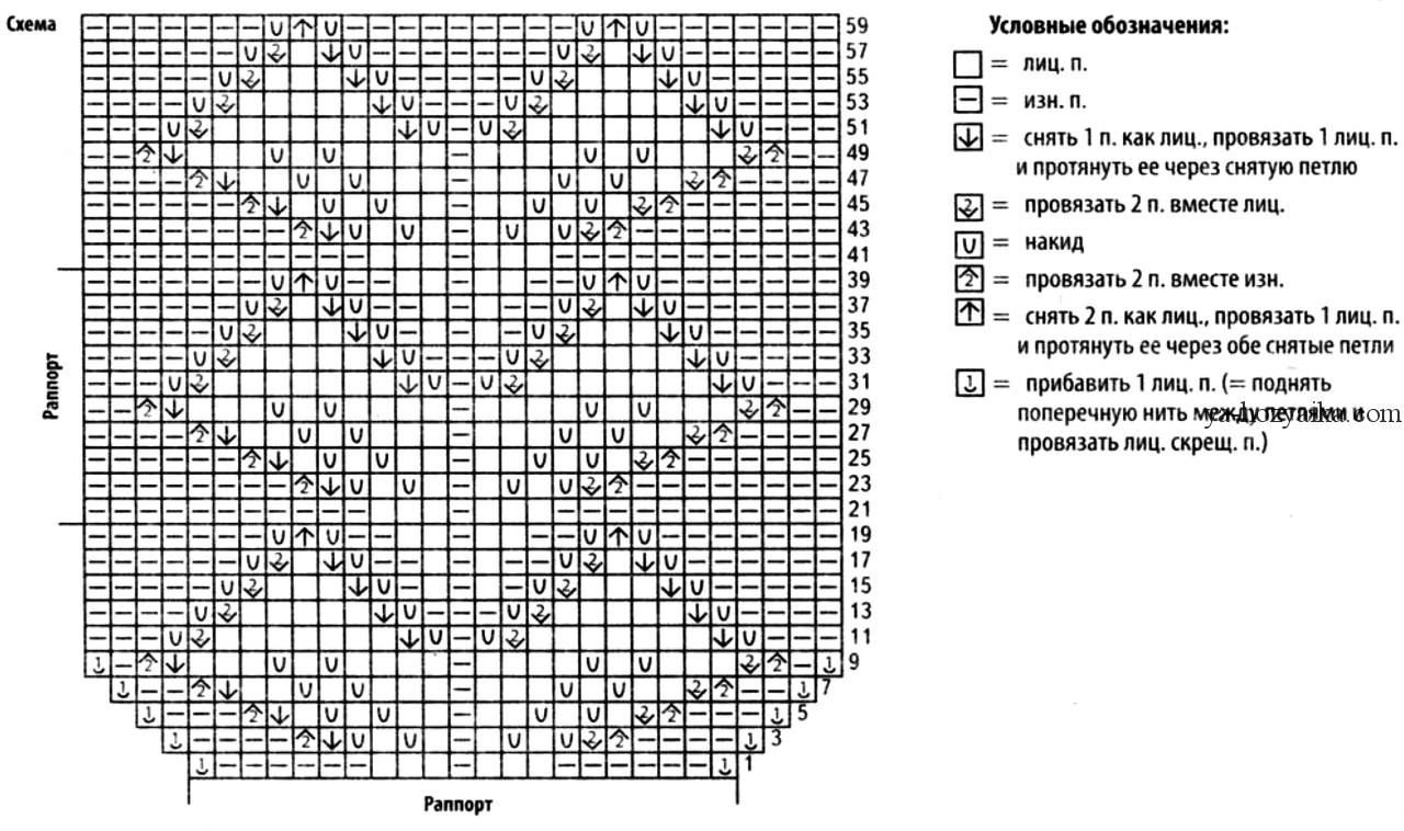 ![Вязание спицами ажурная кокетка от горловины схемы]()
