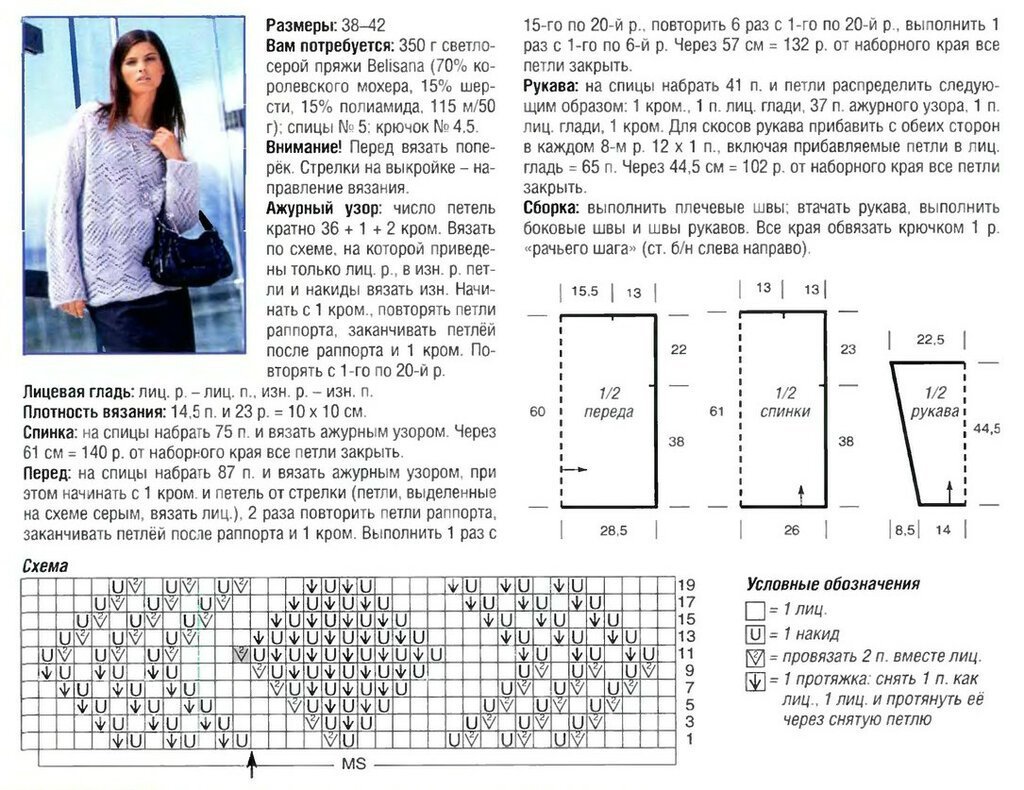 Вяжем ажурный джемпер спицами для женщин схемы