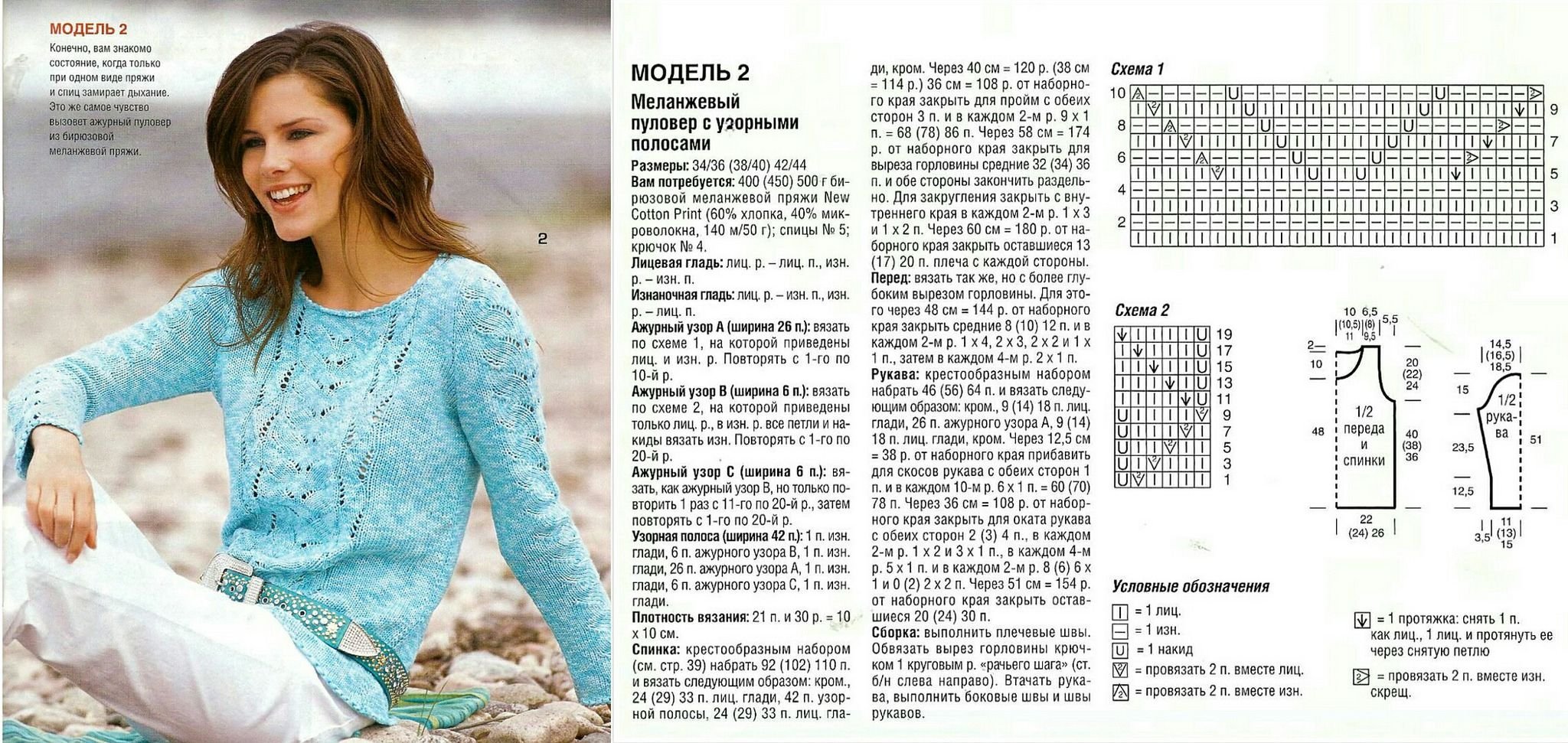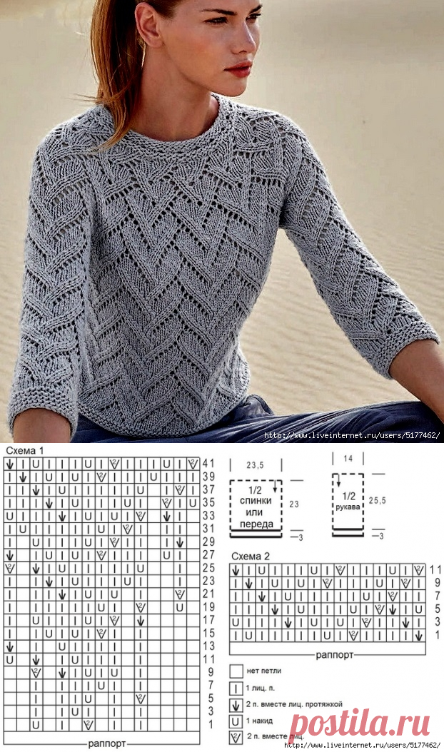 Ажурные пуловеры спицами со схемами простые и красивые