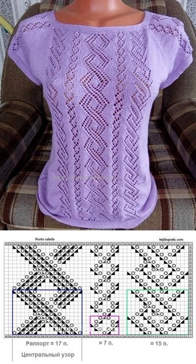 ![Ажурные пуловеры спицами со схемами простые и красивые]()