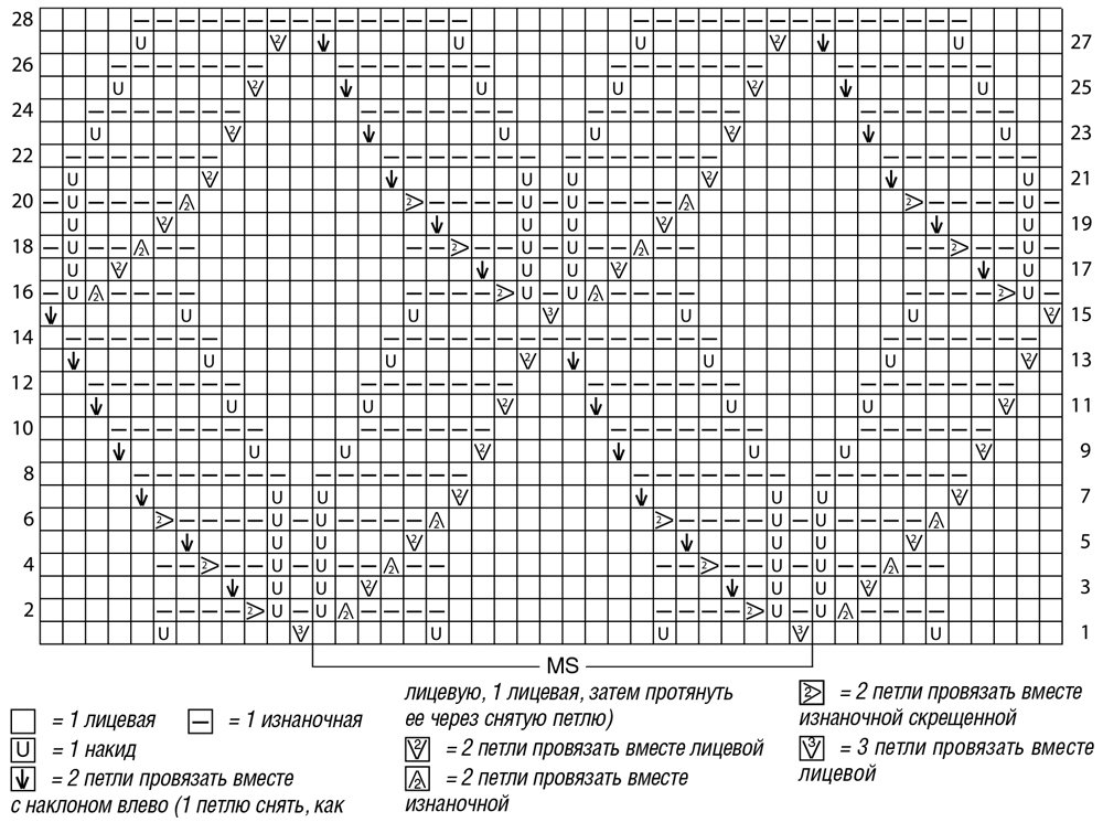 ![Узор лицевыми и изнаночными спицами схема с описанием]()