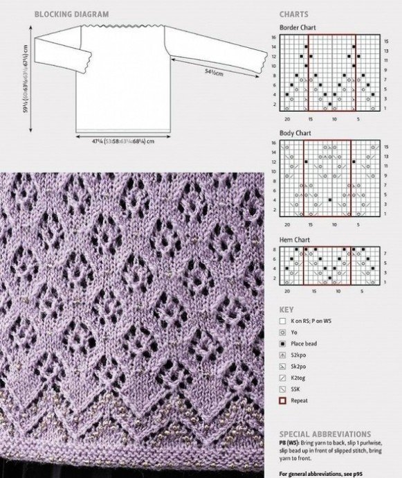 ![Пуловер с узором ромбы спицами схемы и описание]()