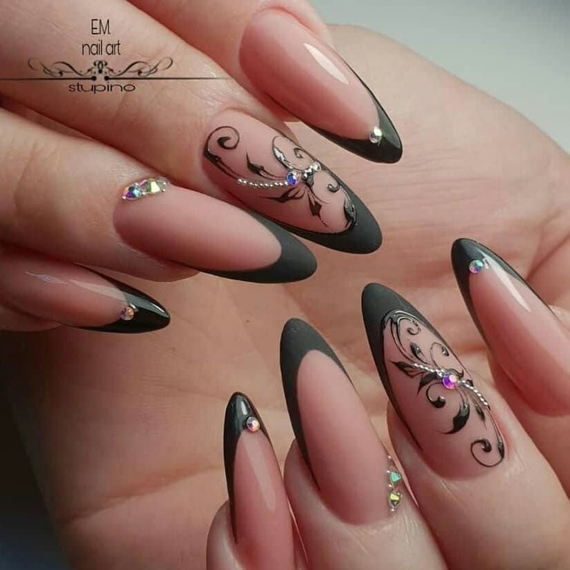 ![Черный френч 2022 миндаль]()