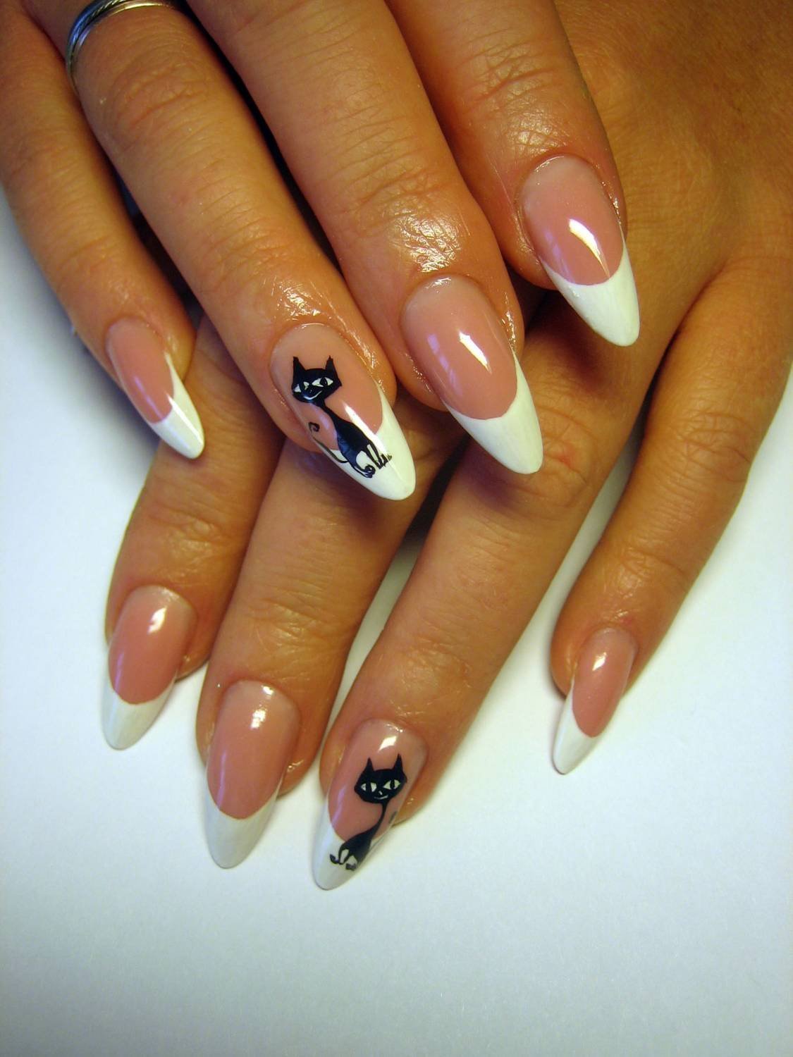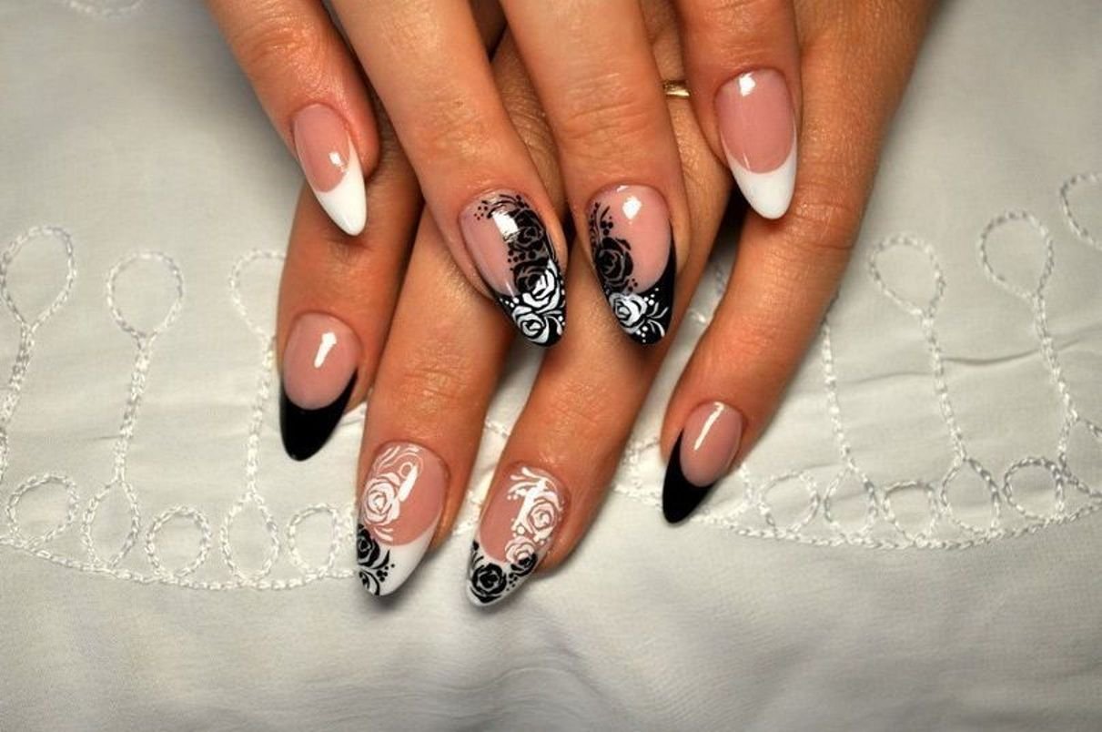 Красивый френч на миндалевидных ногтях с рисунком (50 фото)