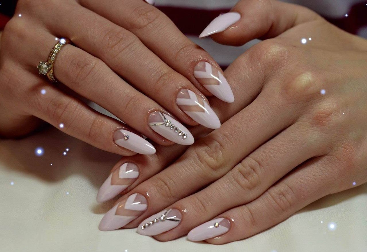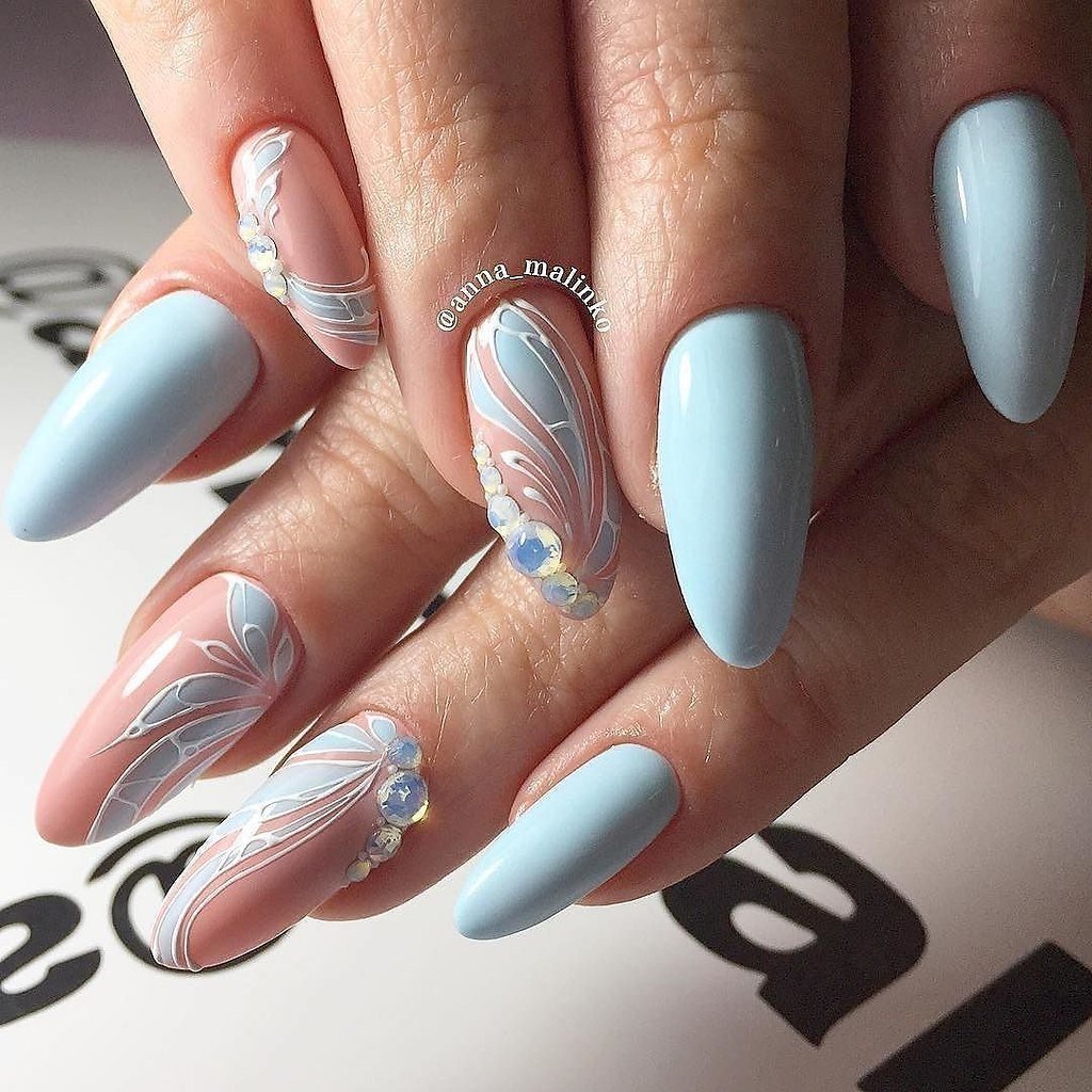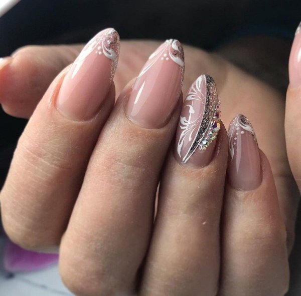 Нежный маникюр на миндалевидные ногти