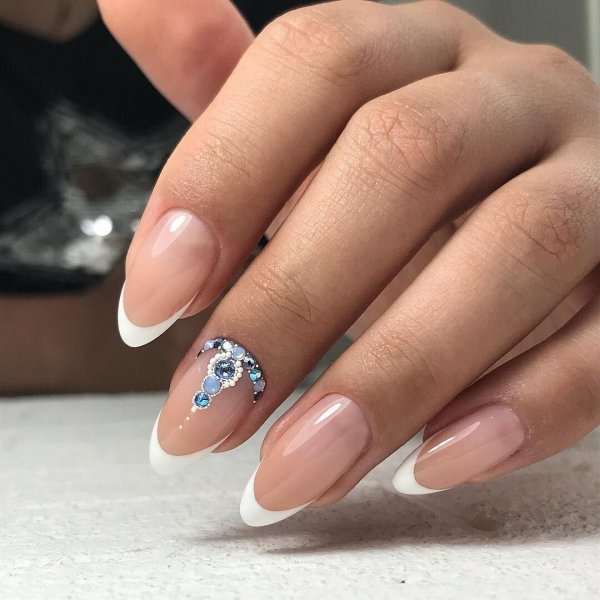 Френч на миндальные ногти со стразами