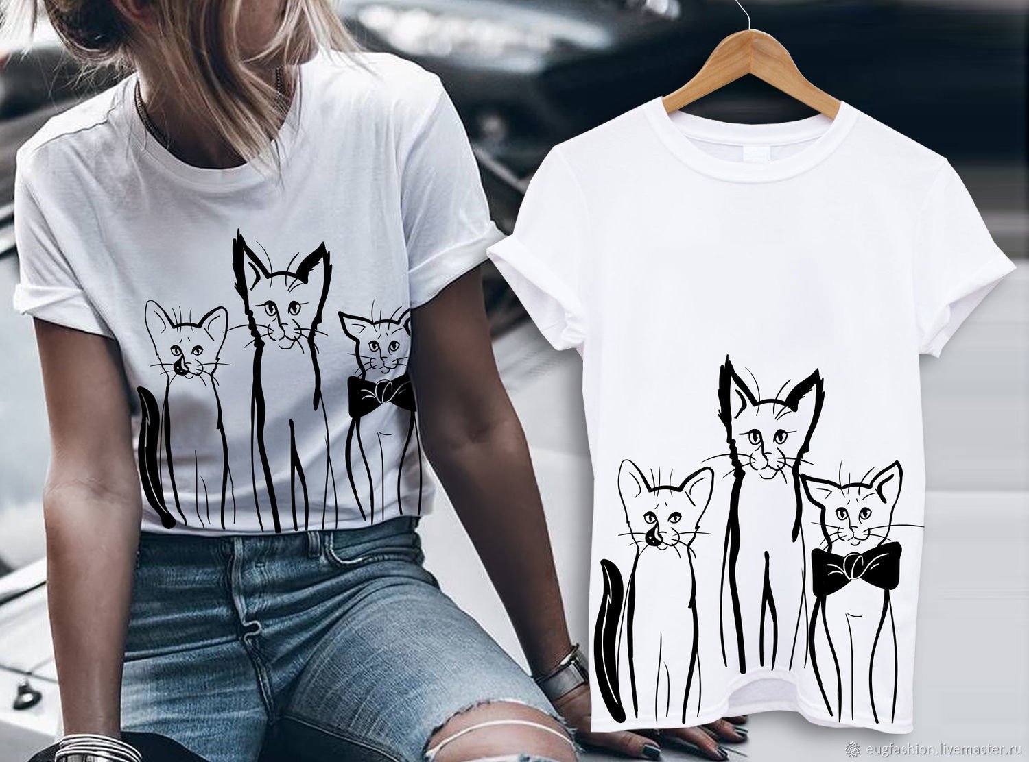 ![Принты с кошками на футболках]()