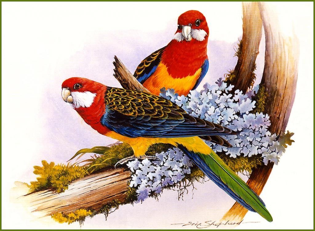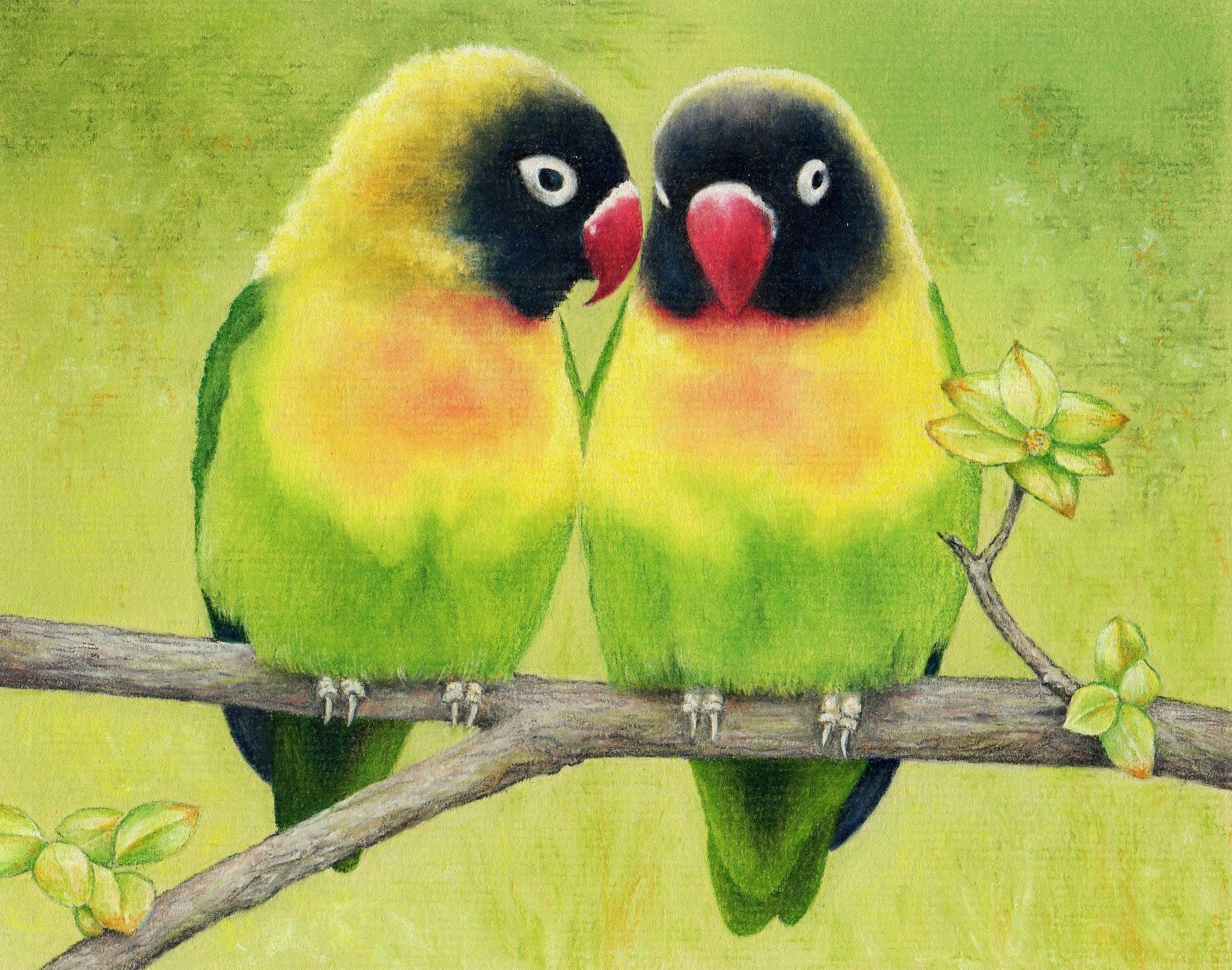 ![Попугаи неразлучники пастелью]()