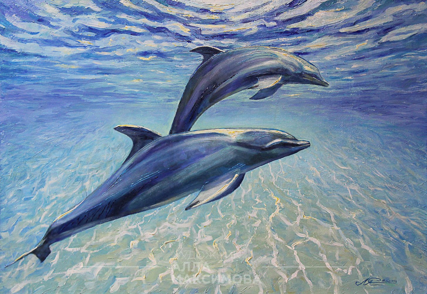 Дельфины маслом