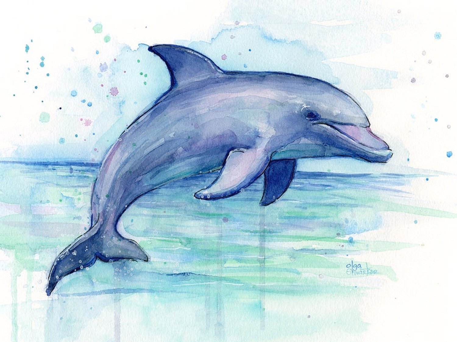 ![Дельфины рисунки красками]()