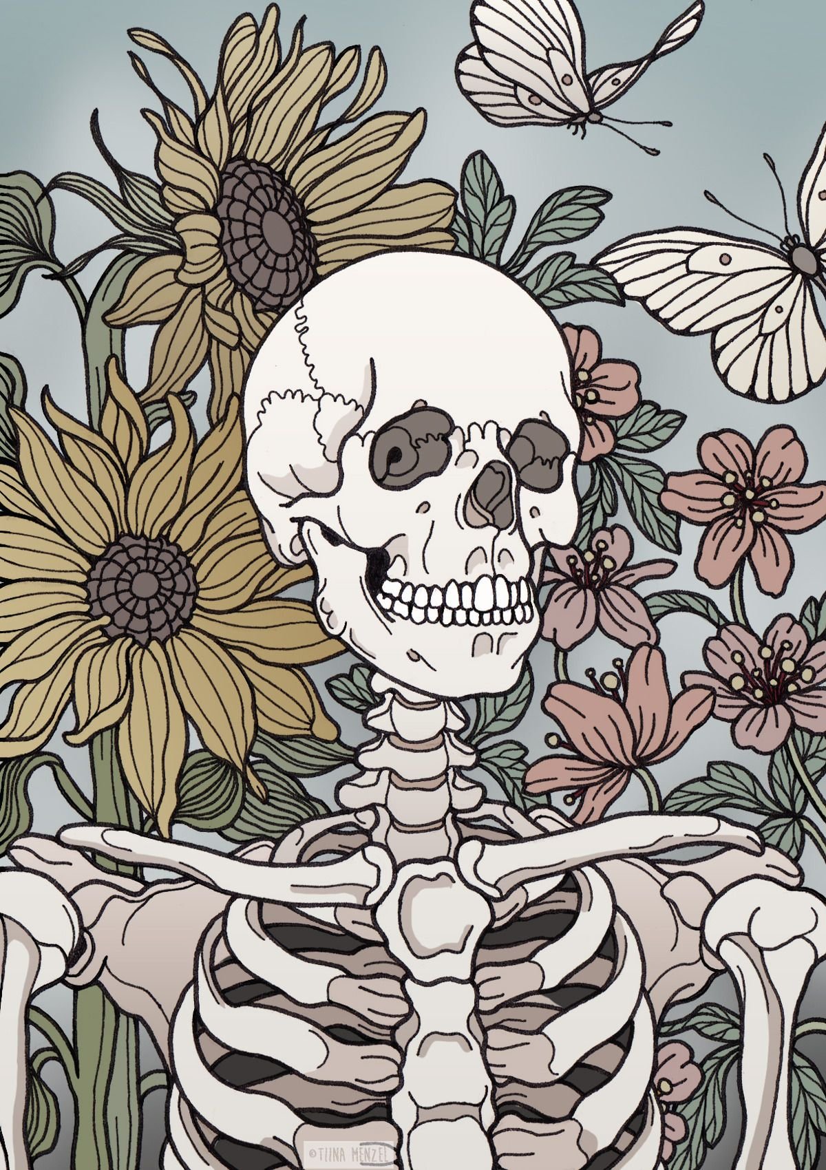 Скелет с цветами
