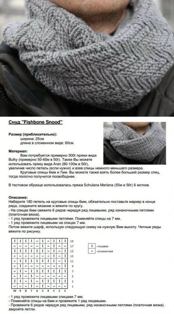 ![Узоры для снудов спицами со схемами для мужчин]()