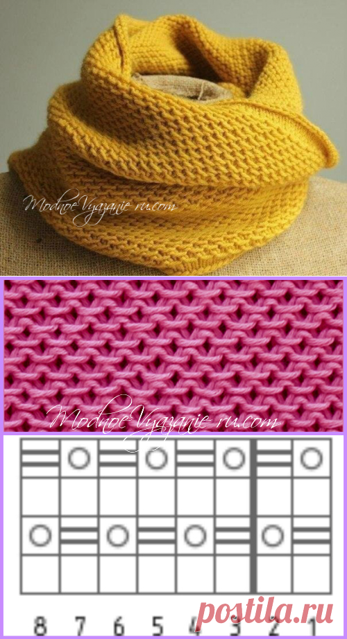 ![Ажурный снуд схема вязания]()