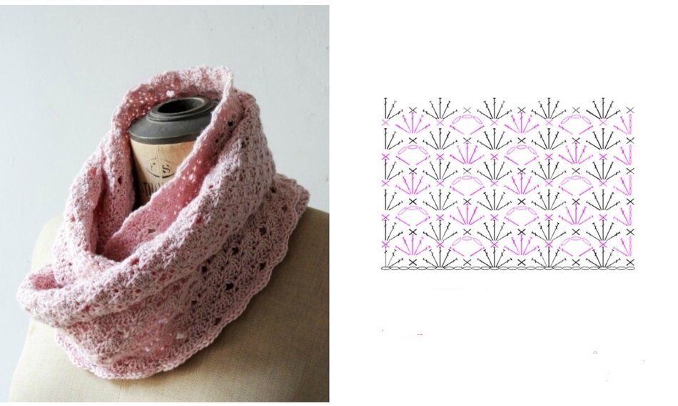 Ажурный снуд схема вязания