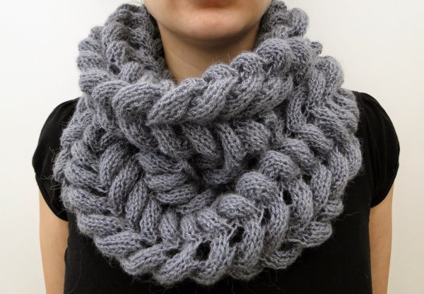 ![Снуд спицами из толстой пряжи схемы для начинающих]()
