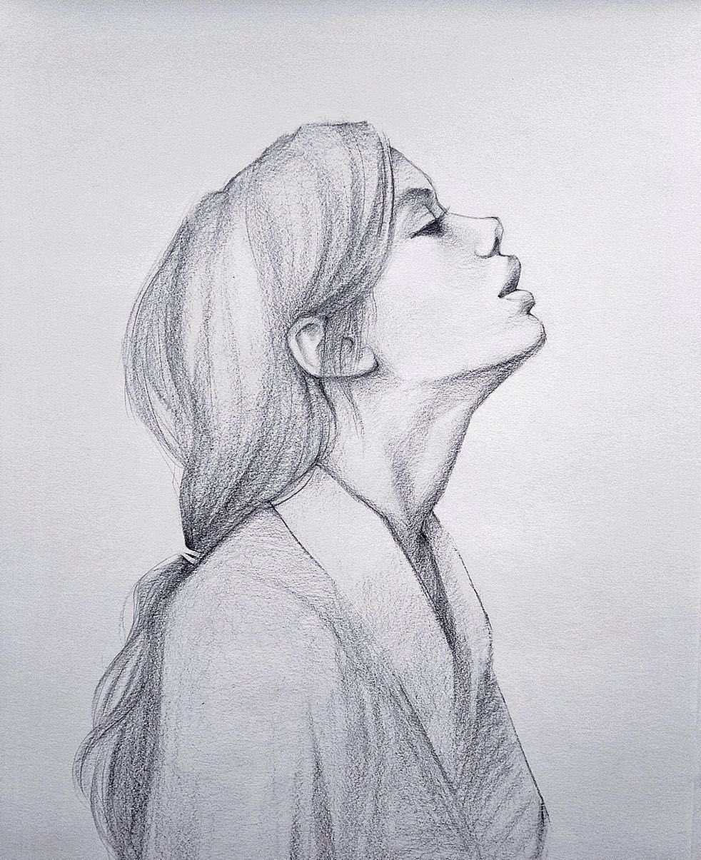 Портрет девушки в профиль карандашом