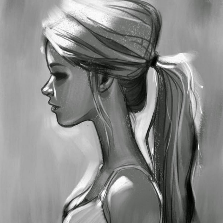 ![Девушка в профиль рисунок]()