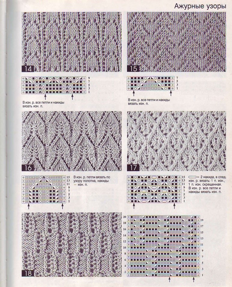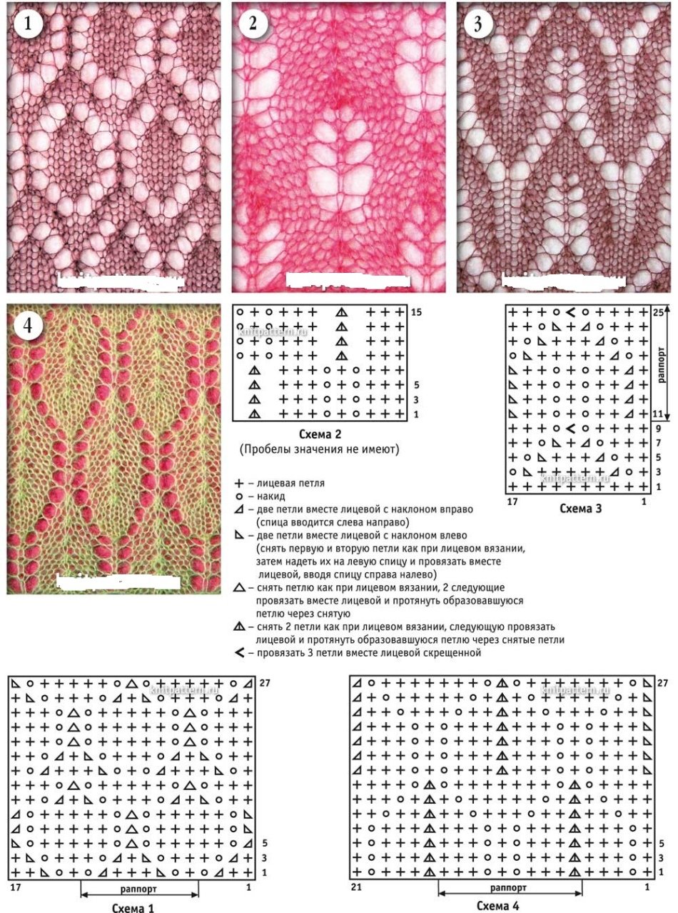 Образцы ажурного вязания на спицах со схемами