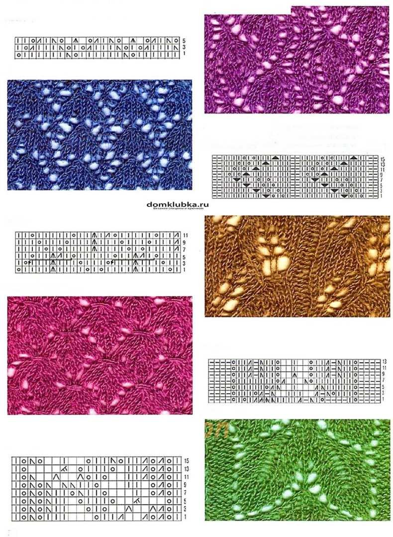 ![Ажурные узоры спицами схемы листочки]()