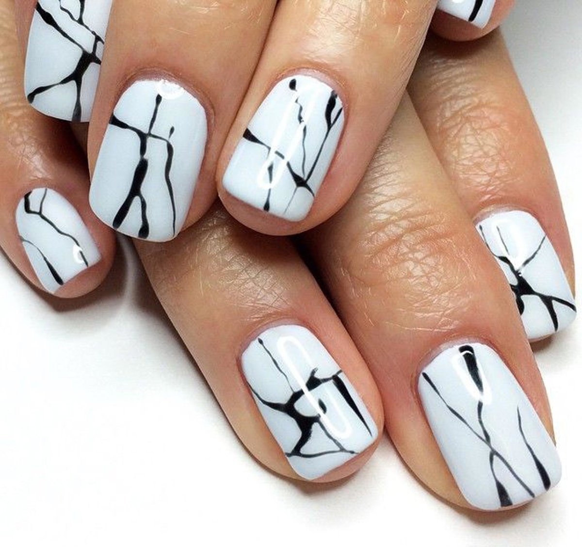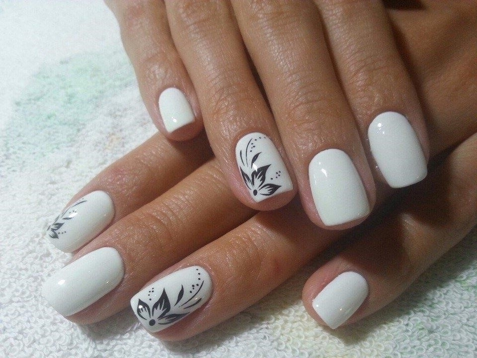 Маникюр белый с черным рисунком