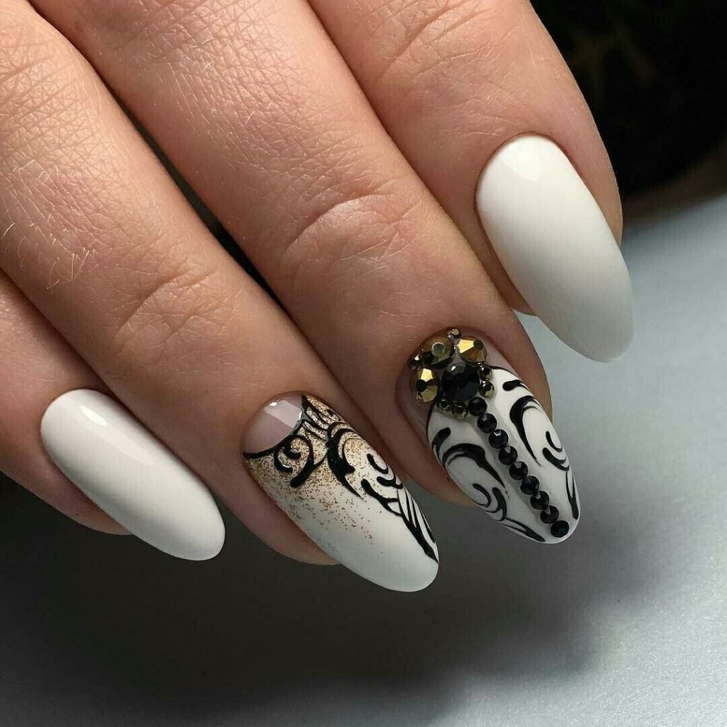 Белый маникюр с узорами