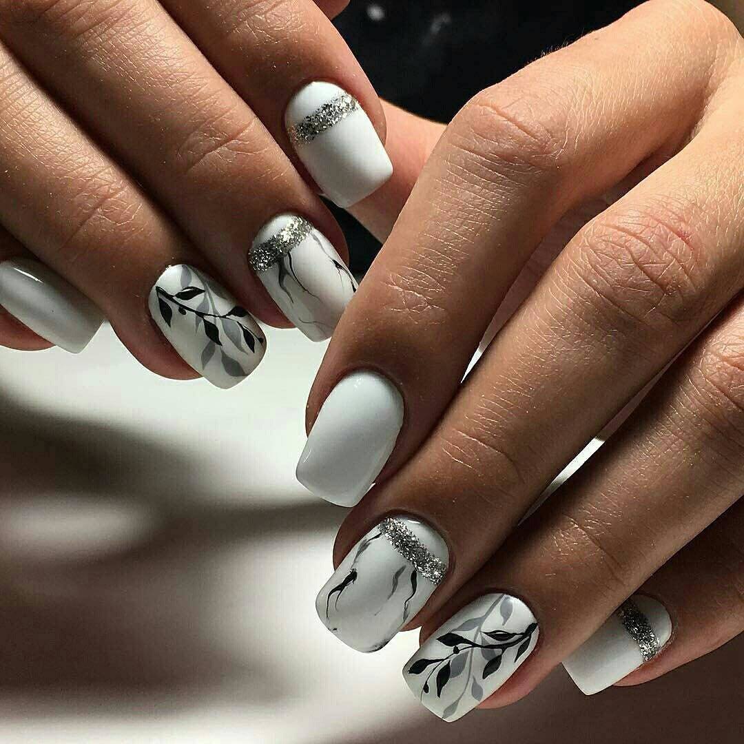 Маникюр белый с серебром