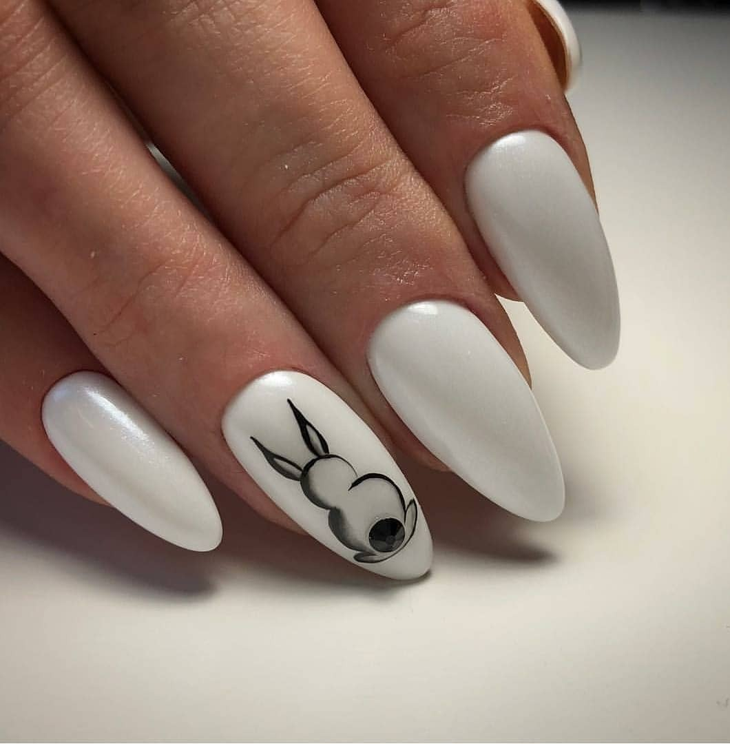 Белый маникюр на миндалевидных ногтях
