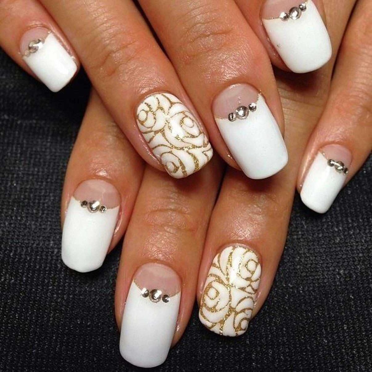 ![Белый маникюр с узорами]()