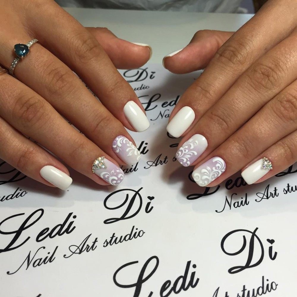 Маникюр белый с рисунком