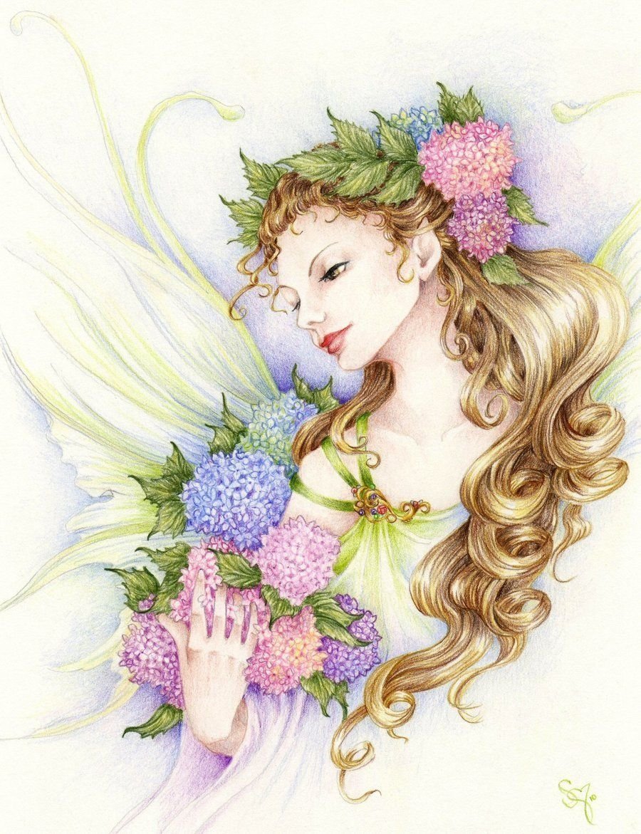 ![Нарисованная девушка всцветах]()